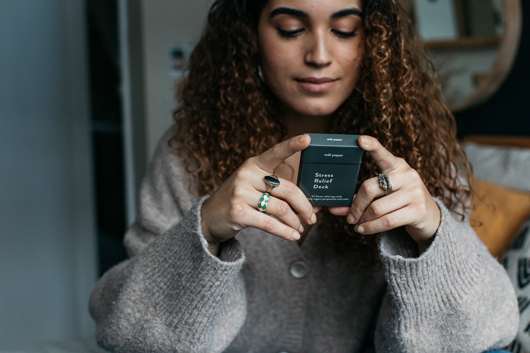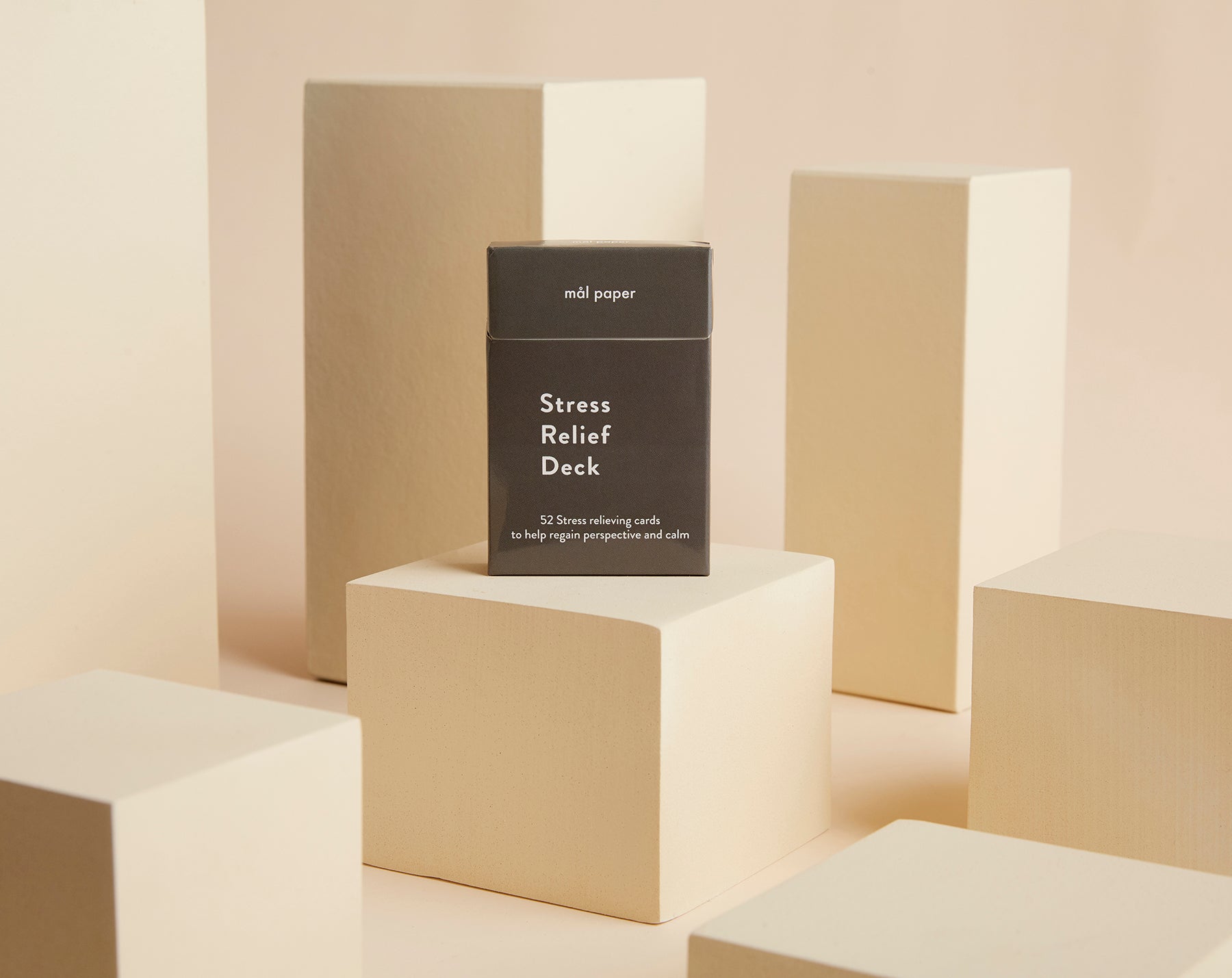 A deck of stress relief cards to help regain a sense of calm and clarity.