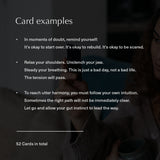 The card deck is made up of 52 different practices and reminders to help you with stress relief in pressured and demanding times. Perfect for using before a stressful task or during the day when you may be feeling more pressure, nervous, tension, or anxiety.